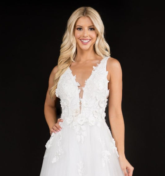 Nina Canacci 1495 size 12 Ivory Floral Embellished Wedding Dress A Line Applique