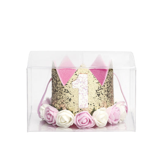 Sweet Wink Gold Glitter Flower Crown #1 Birthday Baby Photoshoot One Year
