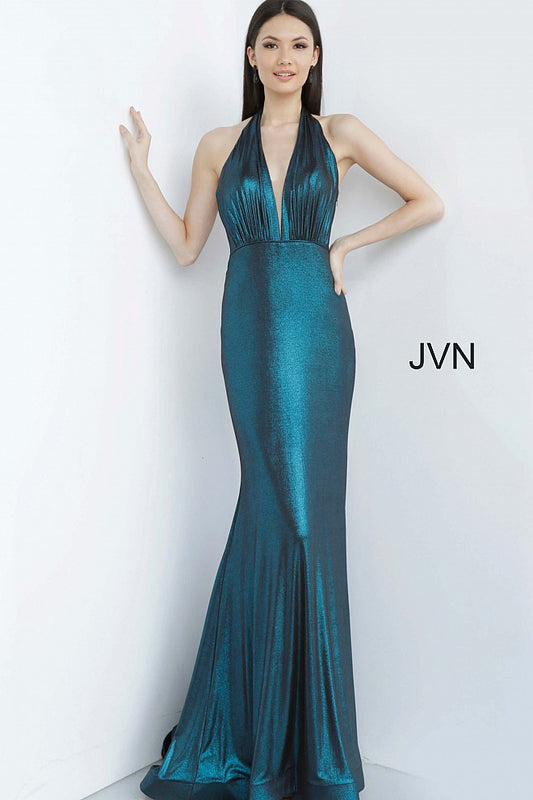 Jovani JVN02712 Size 6 Royal Long Low V Neck Fitted Prom Dress Embellished Belt Slit