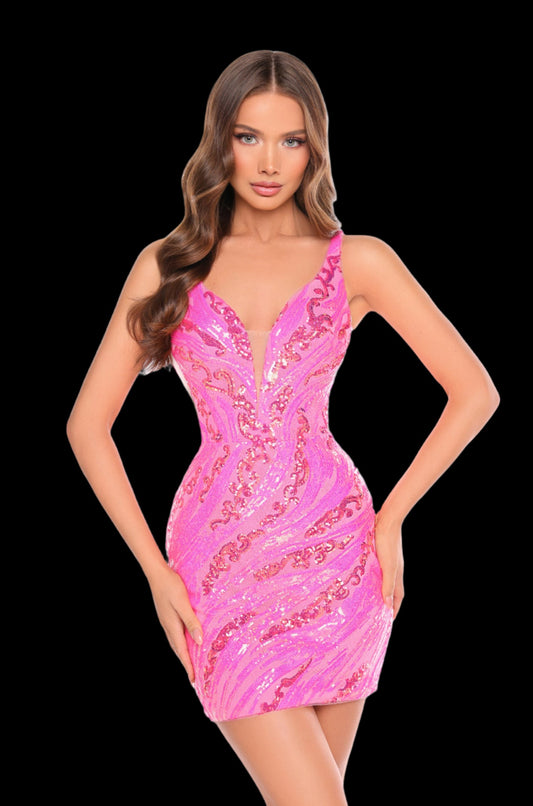 Dave & Johnny 11878 Size 0, 6 Pink Short Glitter Layer Sheer Corset Homecoming Dress A Line Cocktail Gown