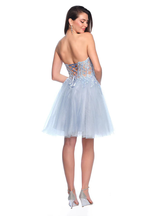 Dave & Johnny 11973 Size 0, 14 Ice Blue Sheer Corset Lace Shimmer Homecoming Dress 3D Floral A Line Cocktail Gown