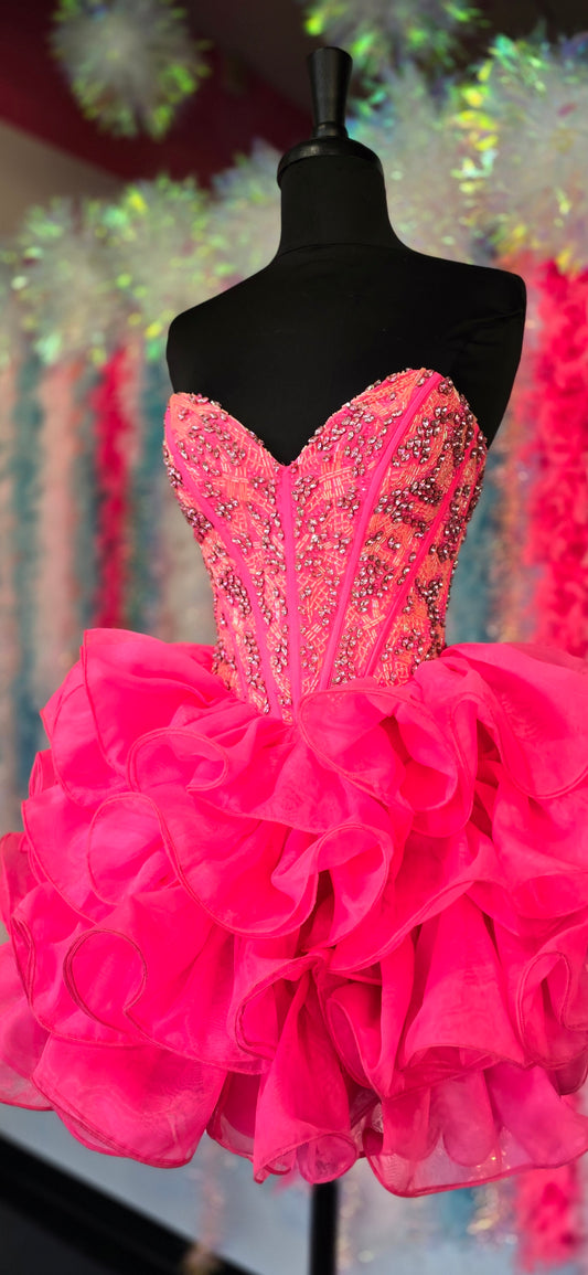Jovani 39932 Size 0 Hot Pink Short Beaded Corset Homecoming Dress Ruffle Skirt Crystal Strapless Cocktail Dress