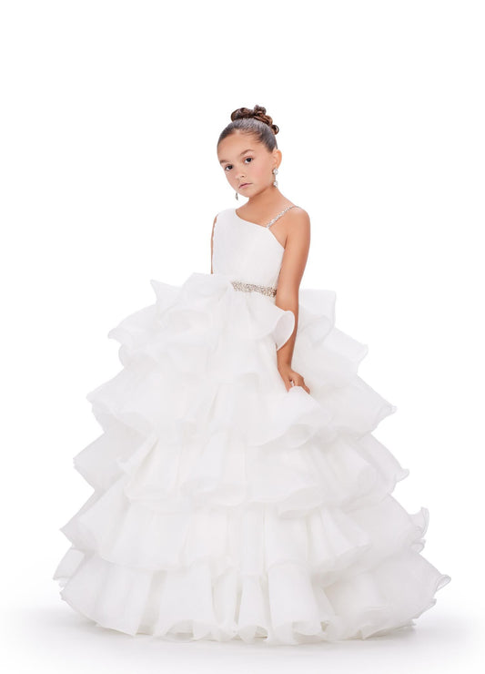 Ashley Lauren Kids 8217 Size 12 Ivory Long Ruffle Pageant Dress Layer Girls Ballgown Bow Crystal Belt Gown