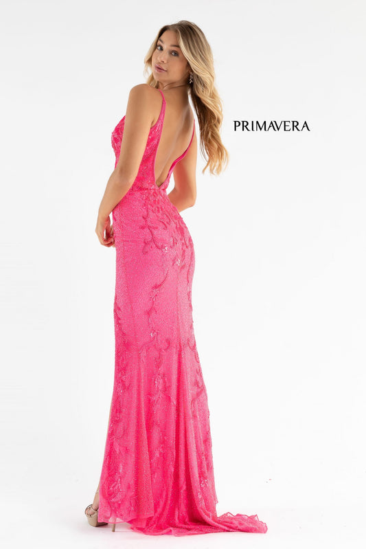 Primavera Couture 3727 Size 22 Prom Dress Beaded Floral Details V Neckline Backless Slit