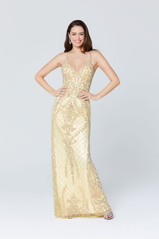 Primavera Couture 3428 Size 22 Yellow Embellished beaded v neckline prom dress Evening Gown