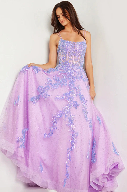Jovani 37700 Size 0 Lilac Long Prom Dress Corset Bodice Glitter Sequin Ballgown Formal Pageant Gown
