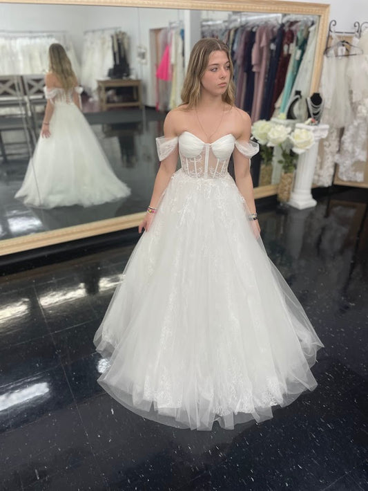 Colors Dress 3240 Size 0,4,8,16,20 Off White Bridal Wedding Dress Long Lace Sheer Corset Ballgown Dress off the Shoulder A Line Prom