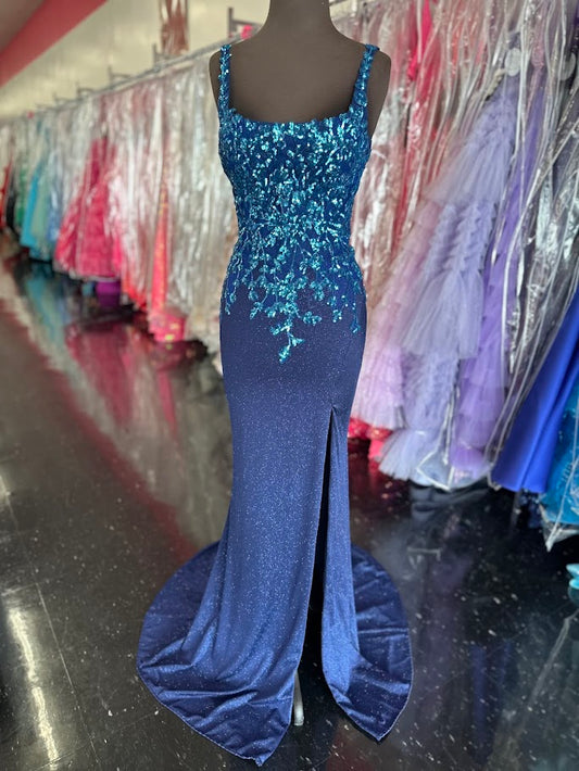 Nina Canacci 5302 Size 4 Navy Long Velvet Sequin Backless Slit Prom Dress Formal Evening Gown