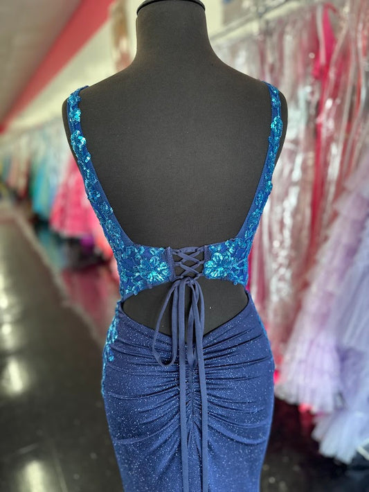 Nina Canacci 9877 Size 4 Midnight Fitted Sequin Shimmer Backless Prom Dress Corset Scoop Neck Gown Slit