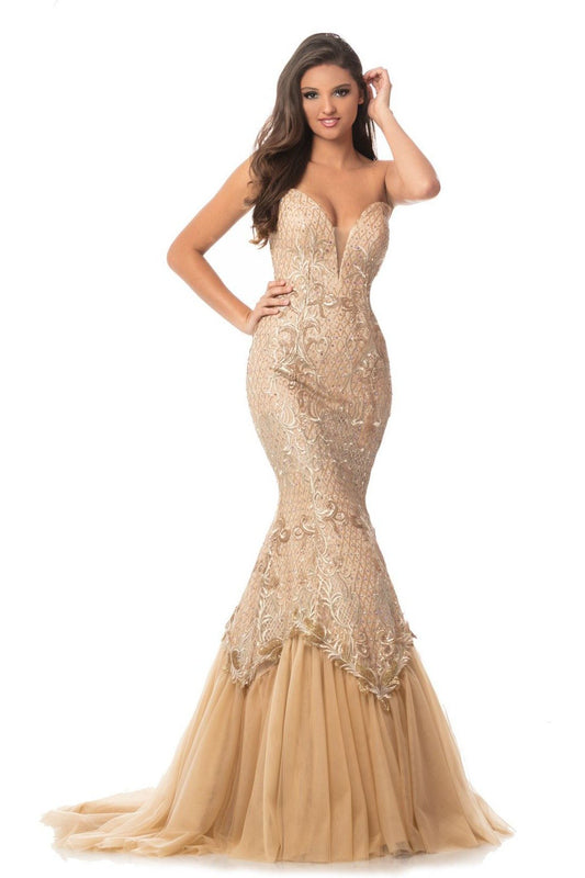Nina Canacci 1587 Size 4 Champagne Sheer Corset Prom Dress A Line Sequin Scoop neck formal ballgown