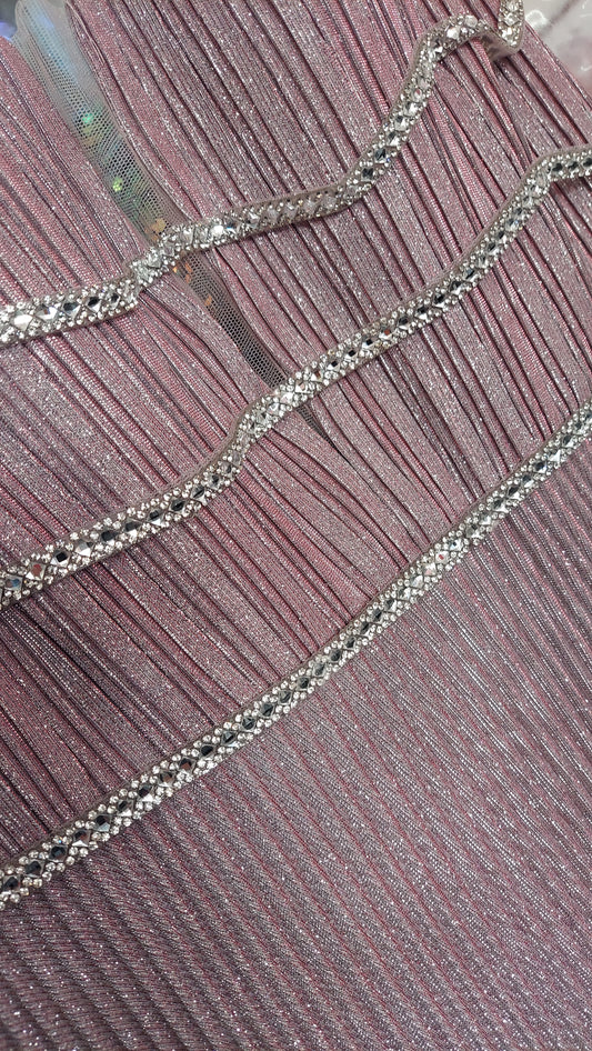 Jolene 20005 Size 12 Long Pleated Iridescent Glitter Prom Dress Formal Gown V Neck
