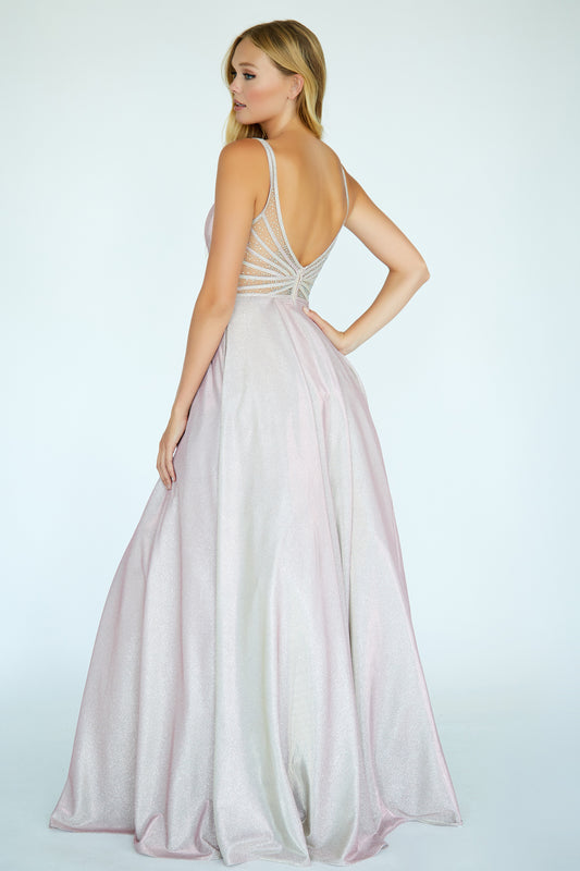 Jolene 20044 Size 6 Long Iridescent Glitter Ballgown Prom Dress Pockets Sheer Embellished