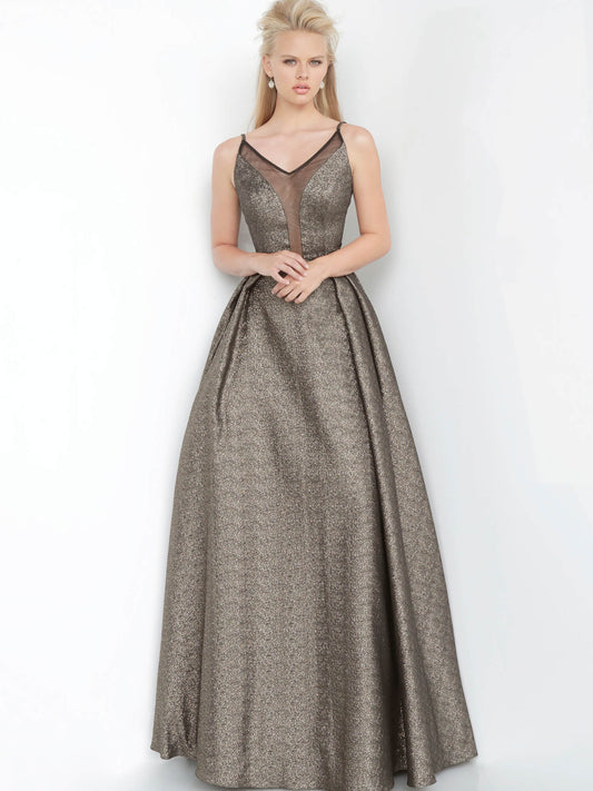 Jovani JVN2368 Size 14 Bronze/Silver Metallic A Line Prom Dress Pockets Ballgown High Neckline
