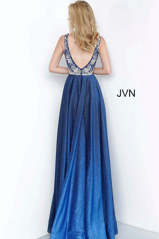 Jovani JVN4608 Size 4 Blue Ombre Shimmer Maxi Prom Dress Gown V Neck Embellished