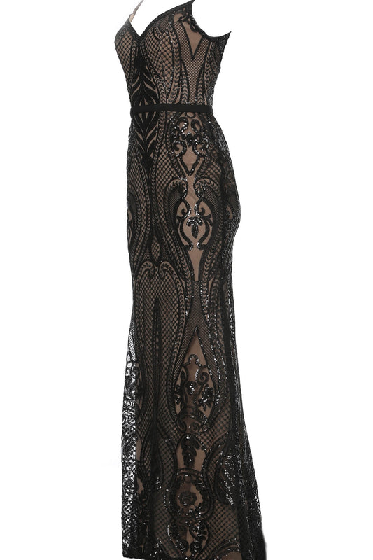 Jovani JVN66960 Size 6 Black Long Sequin Lace Fitted Prom Dress Gown Evening