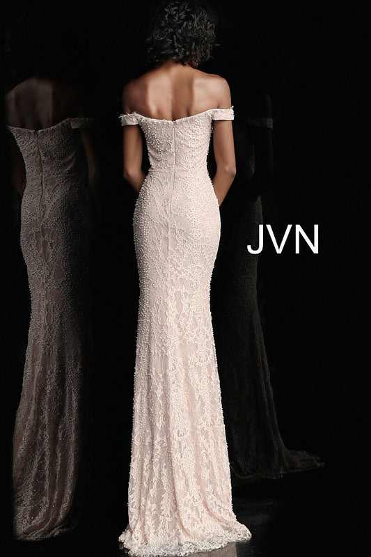 Jovani JVN66695 Size 10 Blush Lace Pearls Embellished Prom Dress Pageant Gown