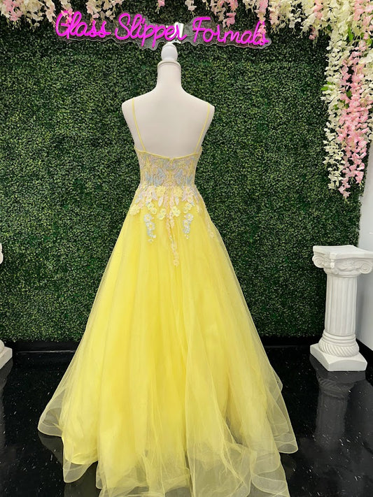 Johnathan Kayne 2686 Size 4 Yellow lace studded corset A Line Ballgown Prom Dress