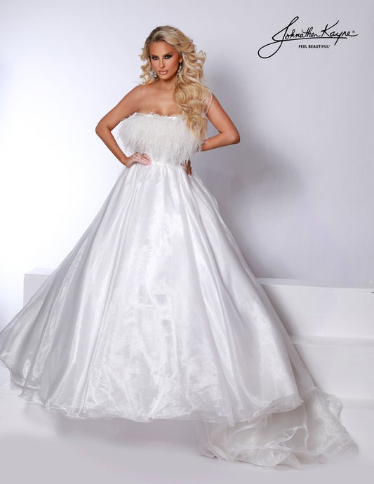 Johnathan Kayne 2739 Size 4 LILAC strapless feather neckline evening dress long organza A line gown