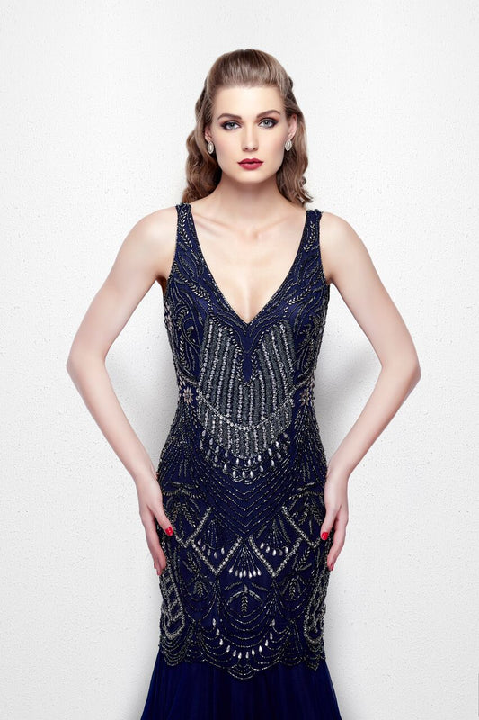 Primavera Couture 3001 size 6 Midnight mermaid beaded prom dress