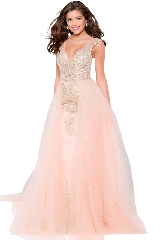 Jovani JVN46081 size 0 Charcoal Beaded Prom Dress Overskirt Pageant Gown Sheer