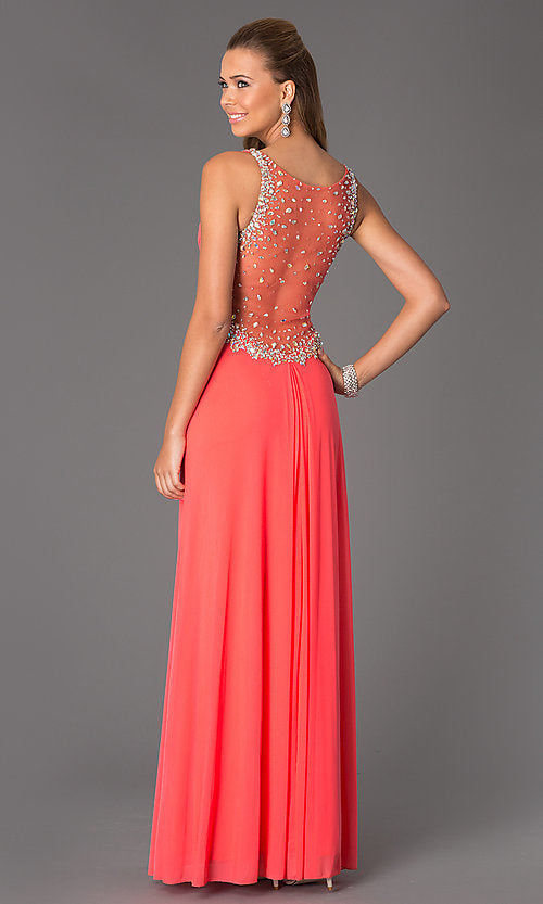 Jovani JVN94375 Size 8 sheer prom dress V neck slit Backless Watermelon Gown