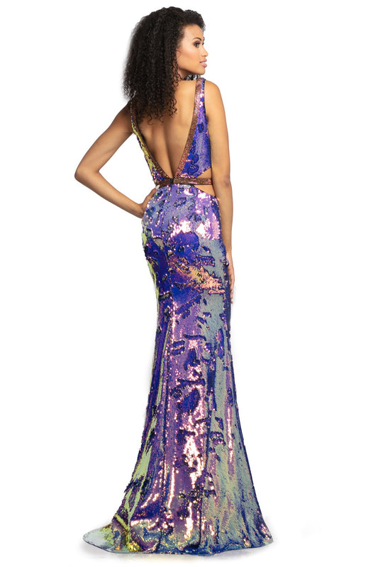 Johnathan Kayne 2092 Size 2, 6 Purple/Multi Iridescent Sequin Glitter Prom Dress Pageant Gown Long