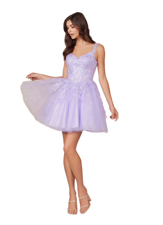 Nox Anabel E904 Short sheer lace sequin Homecoming Dress Layer shimmer skirt Corset Gown