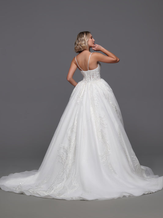 Davinci Bridal 50843 Size 12 Ivory Beaded Wedding Dress Detachable Overskirt Sequin Bridal Gown