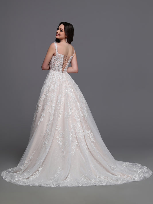 Davinci Bridal 50841 Size 10 Ivory Light Blush Wedding Dress Sequin Beaded Lace Fitted Wedding Dress Train Bridal Gown v neck spaghetti straps