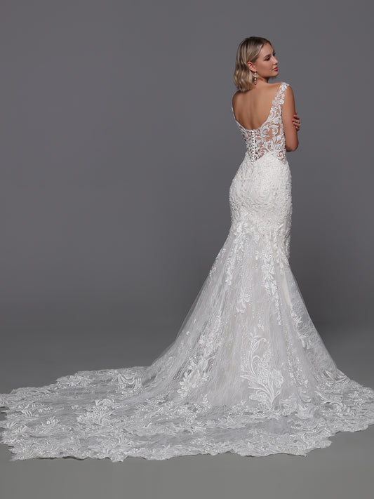 Davinci Bridal F123 Size 10 Ivory Long Beaded Sheer Wedding Dress Mermaid Bridal Gown V Neck Shimmer