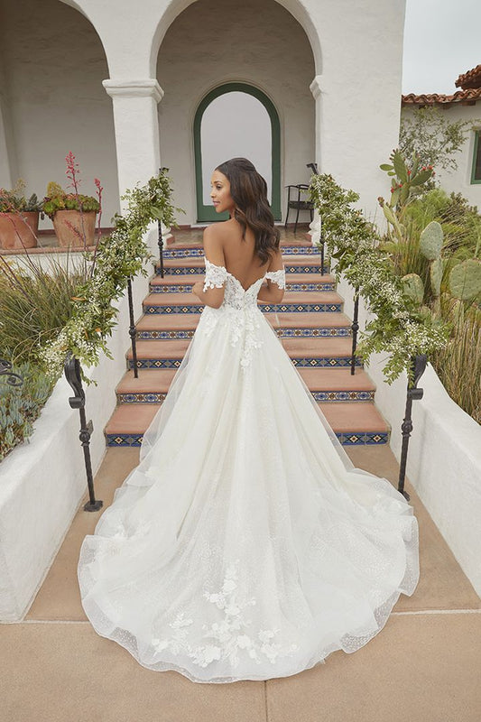 Casablanca Bridal 2554 Size 4 Rochelle Wedding Dress Fit And Flare Off The Shoulder Plunging Neckline Sequin Floral Lace Train