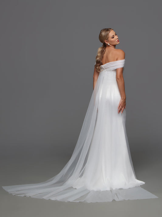Davinci F125 Size 8 Ivory Fitted Satin Wedding Dress off the Shoulder Cape Bridal Gown Slit Strapless
