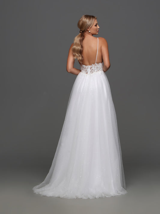 Davinci Bridal F130 Size 6 Ivory Sequin A Line Wedding Dress Beaded Sheer Bridal Gown V Neck Shimmer