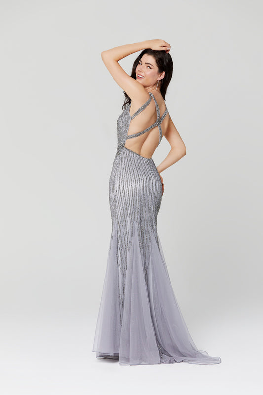 Primavera Couture 3474 Platinum prom dress size 8 sequin mermaid prom dress Pageant Gown