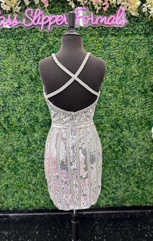 Primavera Couture 3314 Size 6 Platinum Cocktail Dress short beaded sequins homecoming dress