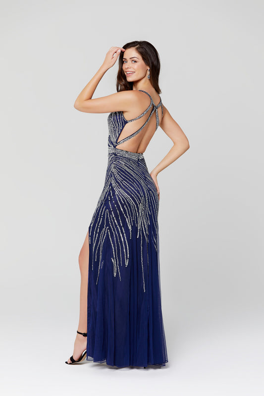 Primavera Couture 3476 Size 0 Midnight Silver V Neckline Prom Dress Evening Gown