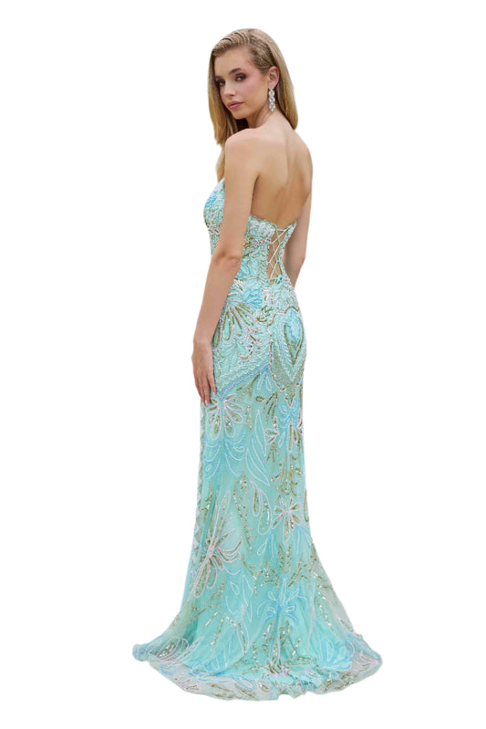Primavera Couture 4314 Sequin Beaded Formal Prom Dress Slit Corset Evening Gown Strapless