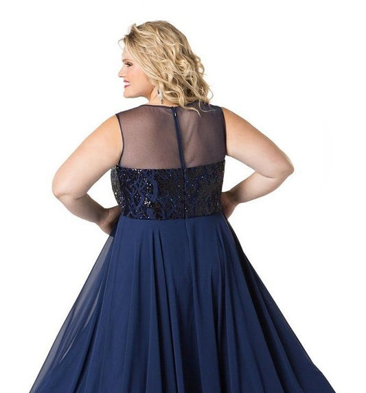 Sydney's Closet 1810 Size 28 Long Prom Dress High Neck Flowing Navy Plus