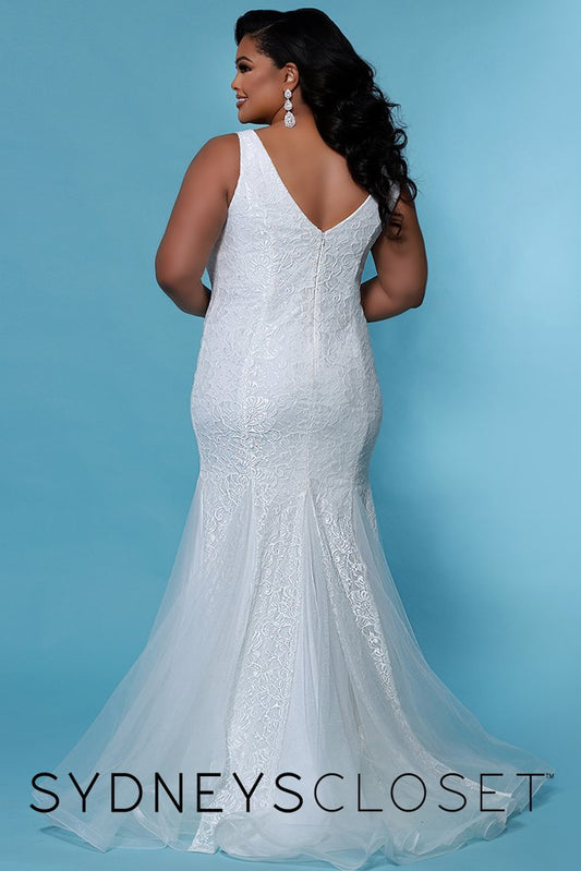 Sydney's Closet SC5258 Size 16 Ivory Wedding Dress Plus Sized Fitted Lace Mermaid Bridal Gown