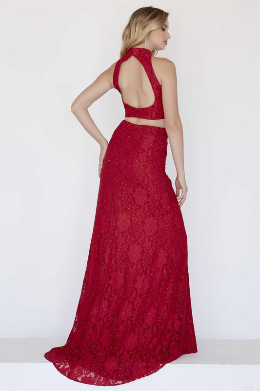 Jolene 18091 Size 8 Red Lace two piece Prom Dress Formal Evening Gown backless