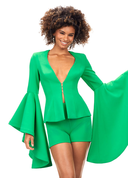 Ashley Lauren 4572 Two Piece Romper with V-Neckline and Bell Sleeves