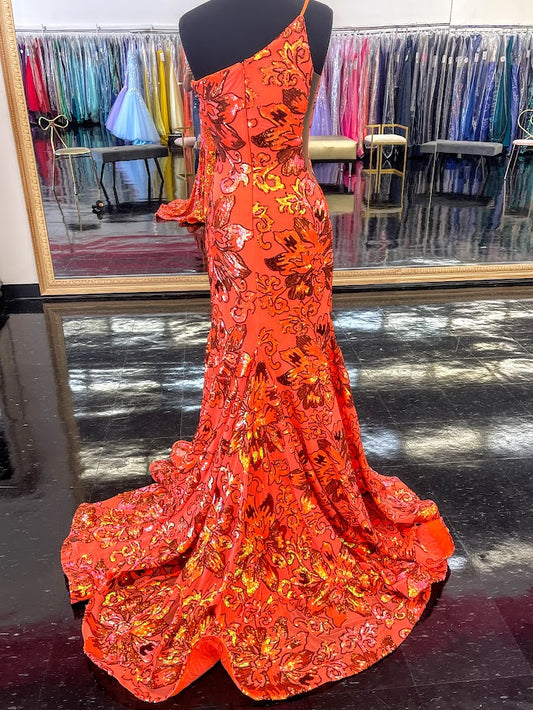 Jovani 23076 Sequin One Shoulder Illusion Side Cut Outs Horsehair Trim Prom Dress