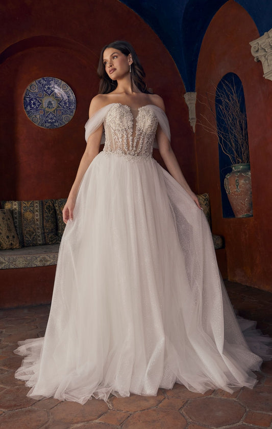 Casablanca Bridal 2547 Meline Size 18 Wedding Dress Ballgown Sheer Corset Off The Shoulder Plunging Neckline Train Wedding Gown