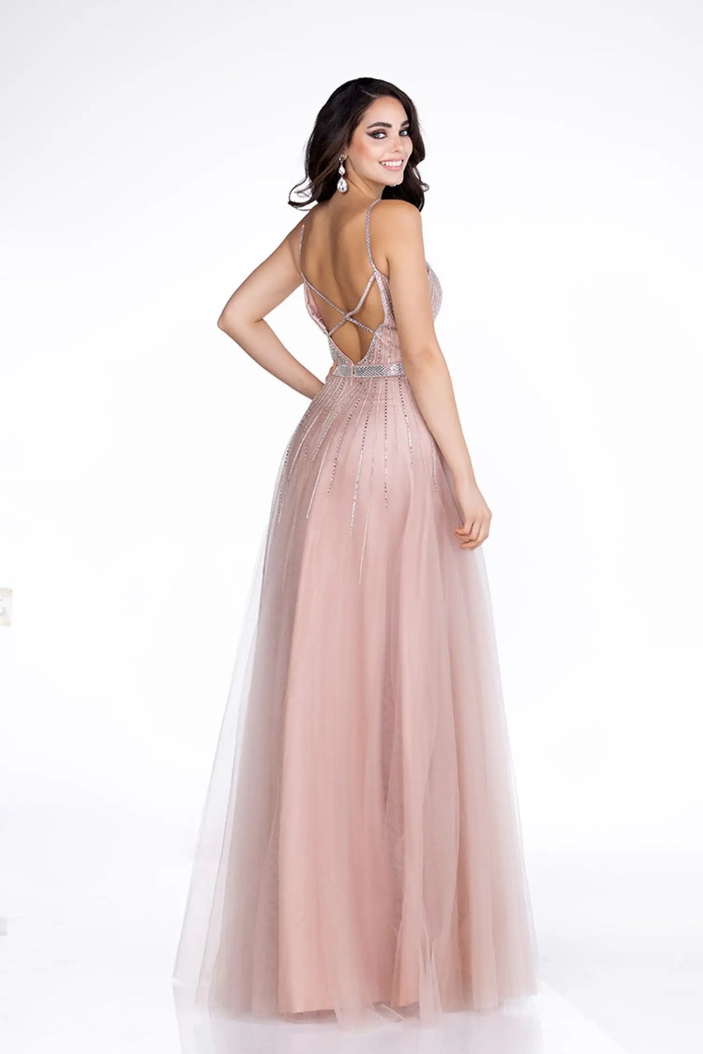 This A Line Formal Gown from Abby Paris is perfect for proms, weddings and other special occasions. Crafted from shimmer fabric and featuring a unique backless design with embellishment for a beautiful look. The v-neckline gives a flattering silhouette.