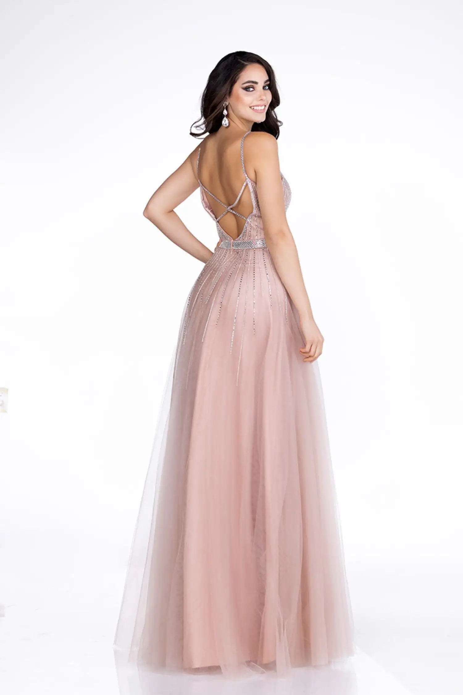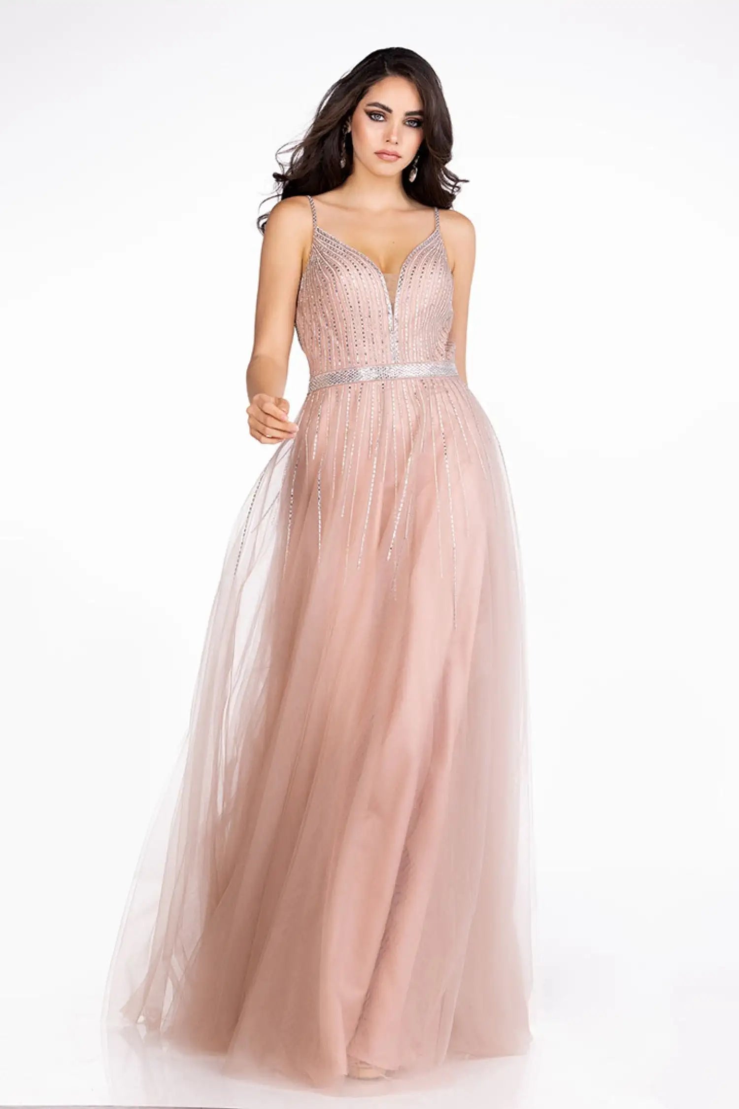 Abby Paris 90083 Size 0 Blush Long A Line Shimmer v neck Backless Prom Dress Embellished Formal Gown