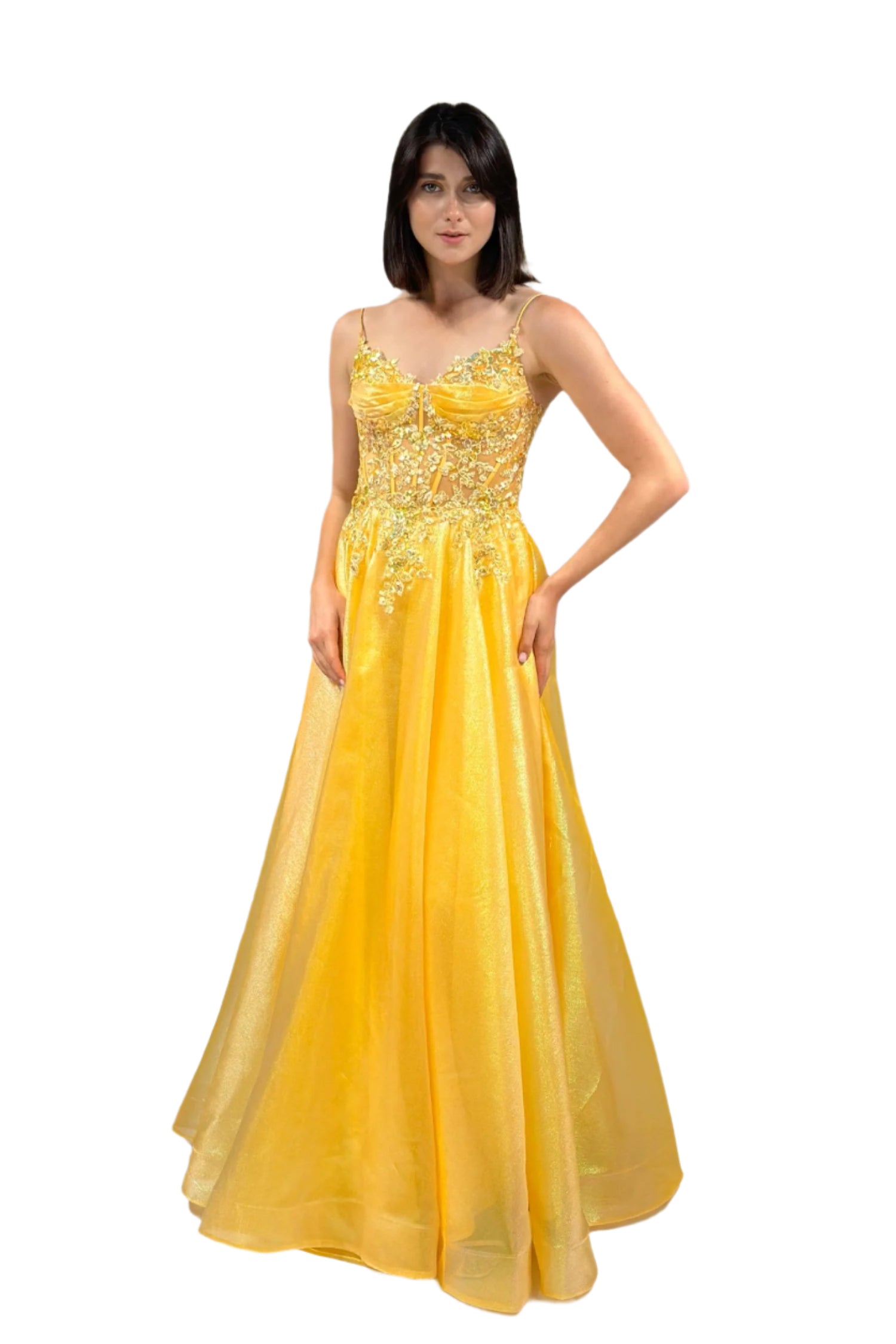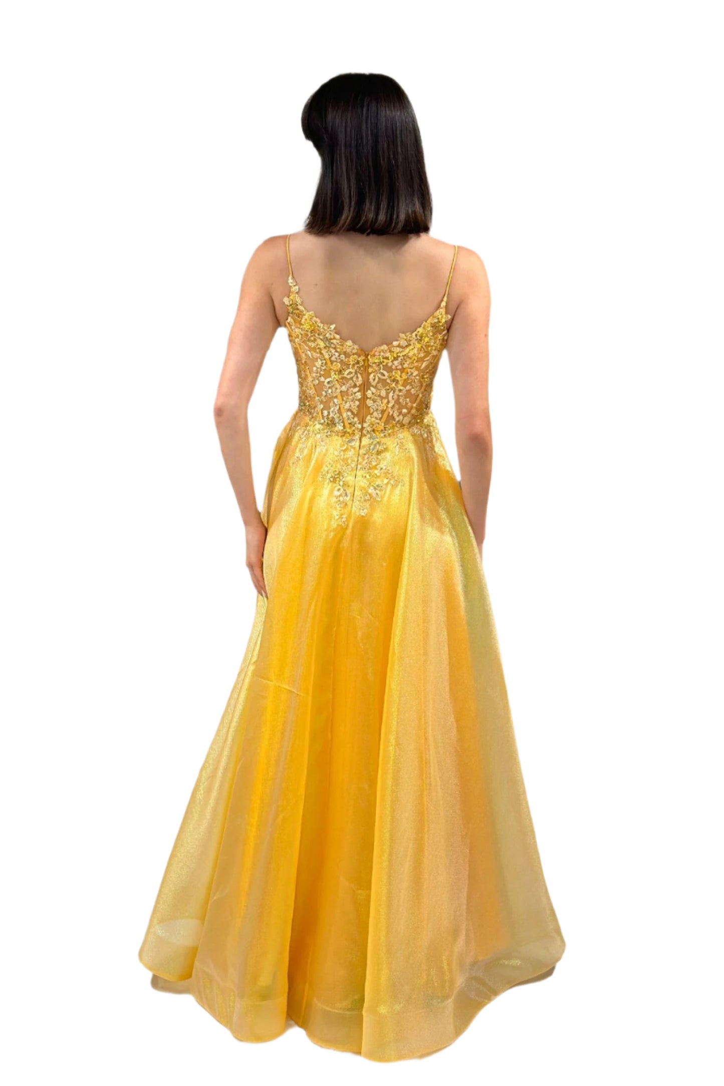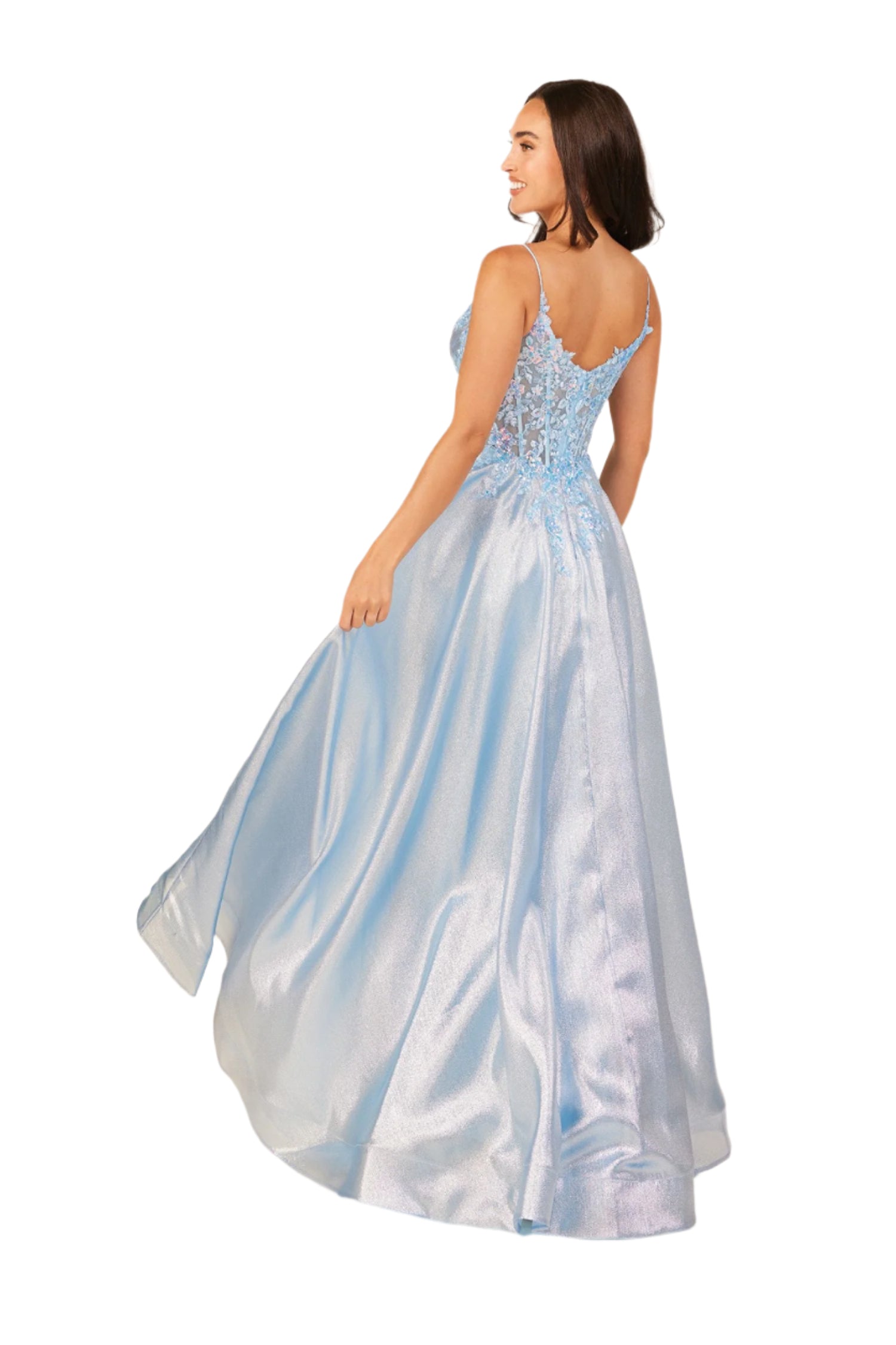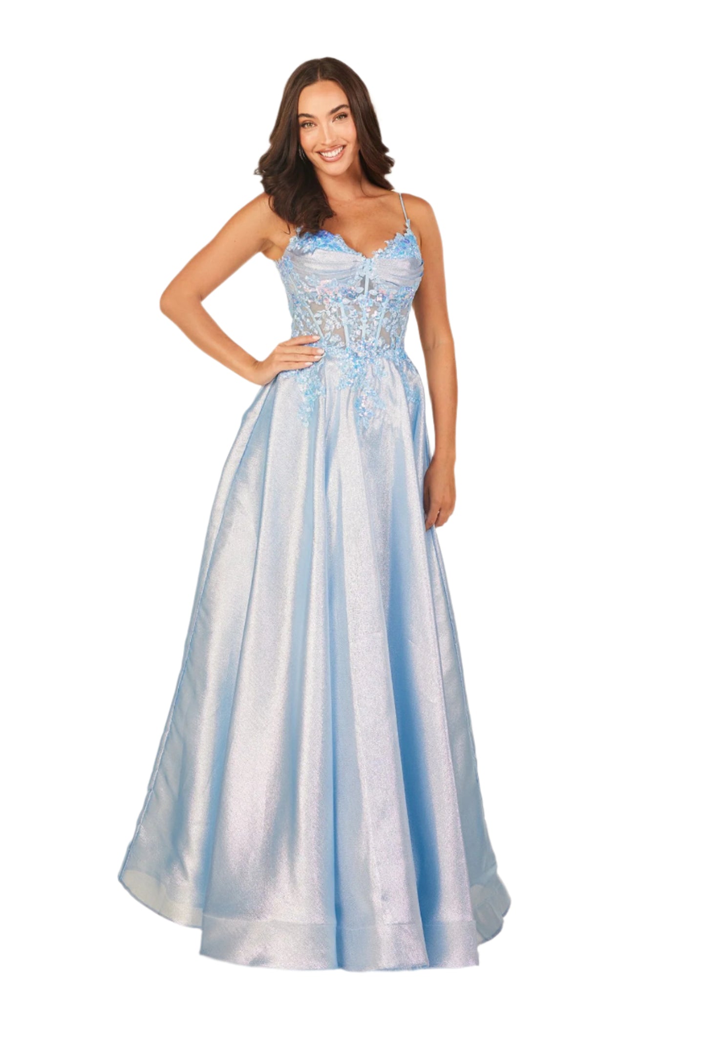 Abby Paris 90290 Sheer Sequin Lace Corset Prom Dress Metallic A Line Formal Gown