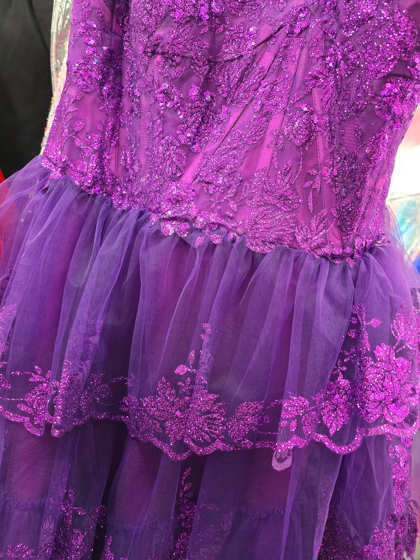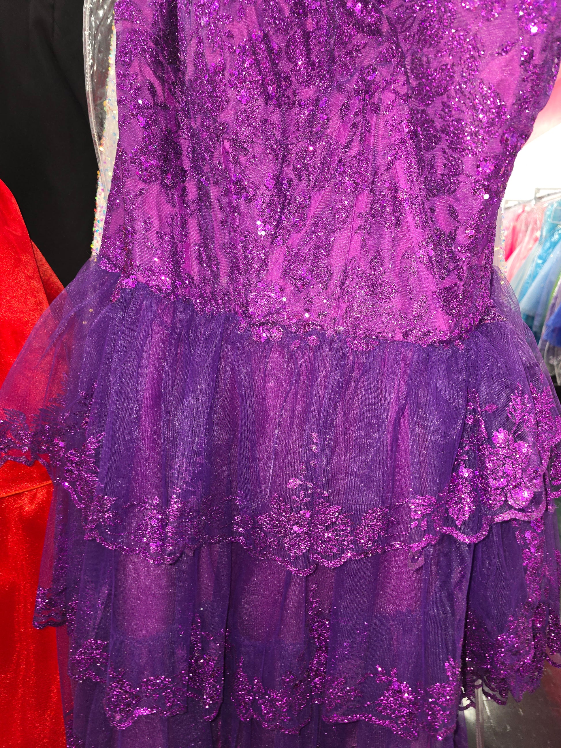 Abby Rose 3311 Size 28 Purple Plus size Homecoming Dress Sequin Layer One Shoulder Corset