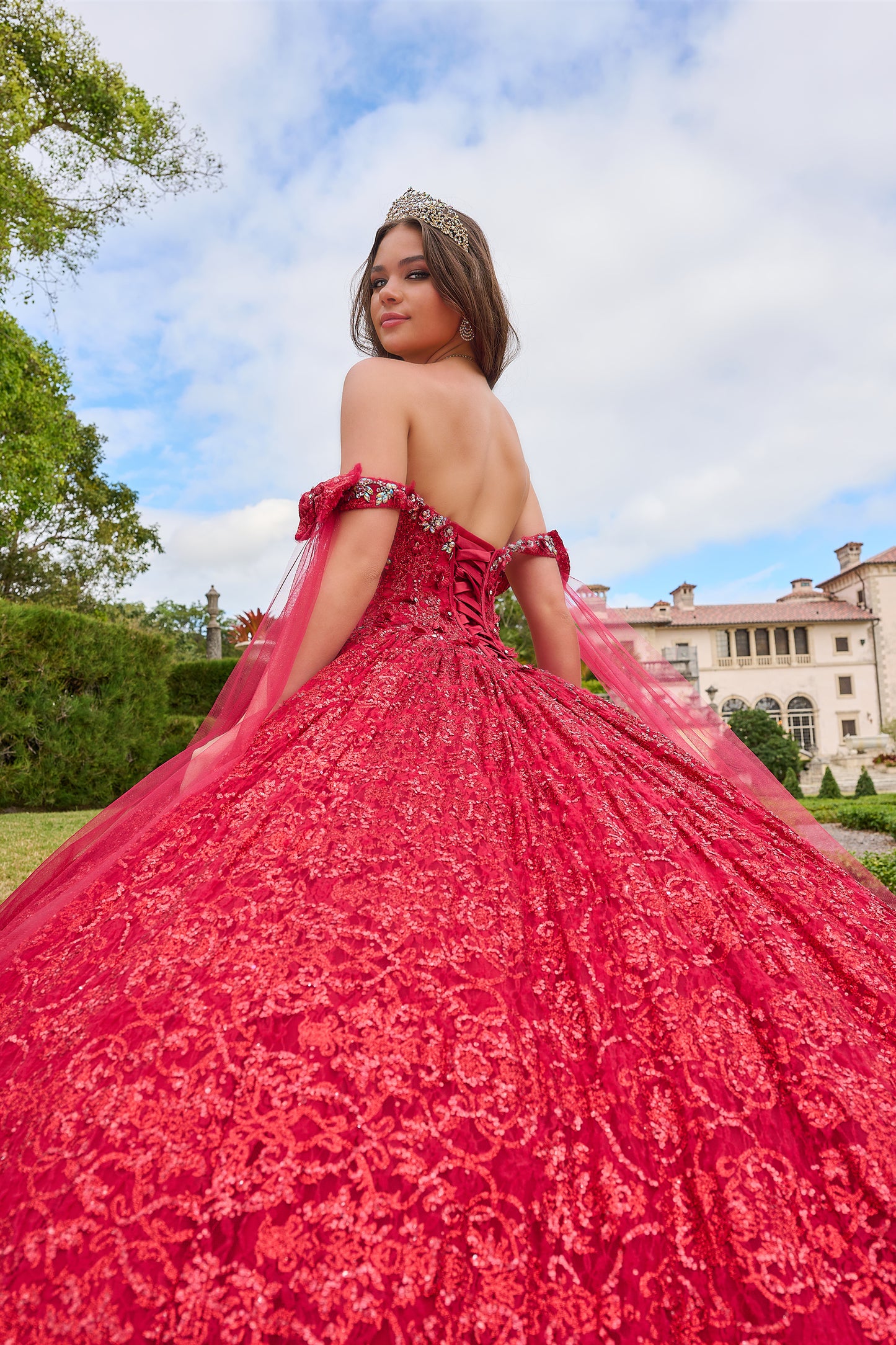 Amarra 54212 Step into enchantment with our beautiful quinceanera gown! Made of luxurious glitter tulle fabric with intricate lace and embroidered patterns, this dress boasts a strapless sweetheart neckline, short sleeves, detachable off-the-shoulder straps, and a cinched waistline for a dreamy silhouette. Perfect for fairytales and fantasies, it's a must-have for your special occasion. Get ready to dazzle! Detachable ruffle layer skirt