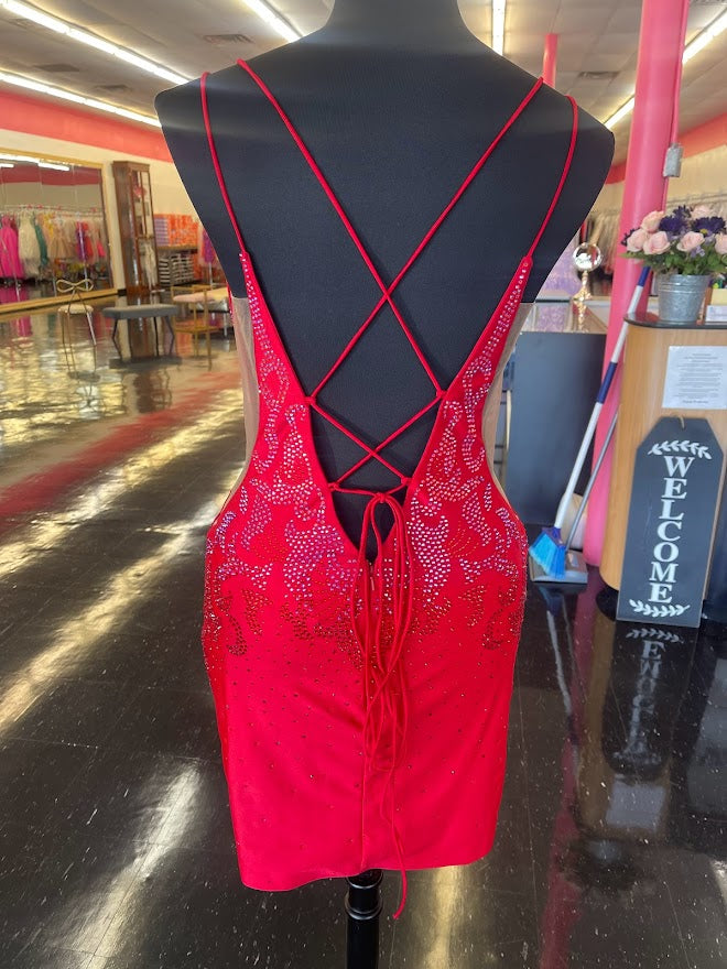 Amarra 87148 Size 6, 12 Red Lycra Jersey Cocktail Dress Embellished Corset