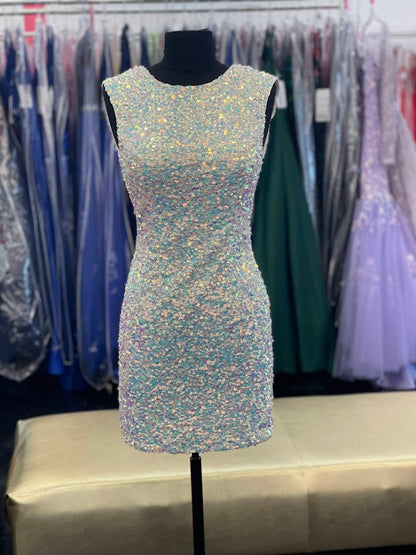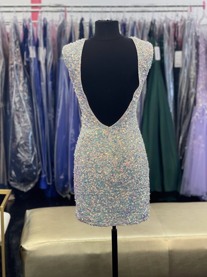 Amarra 87432 Size 2, 12 Cotton Candy Short Fitted Sequin High Neck Backless Modest Homecoming Dress Formal